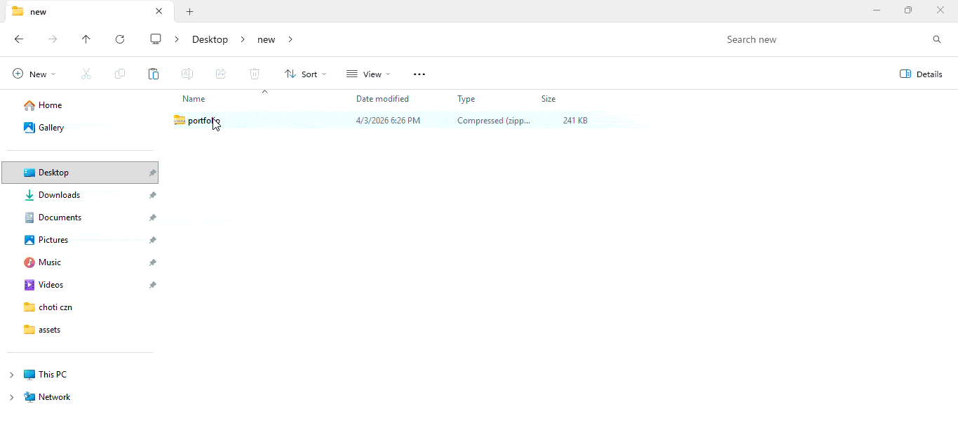 Before uploading your portfolio, make sure you prepare your files properly. If your portfolio is downloaded as a ZIP file, you need to extract it first. Netlify does not accept ZIP files directly, so you must upload the extracted folder that contains all your website files.