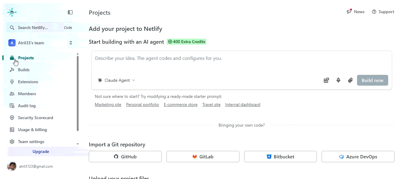 After signing up, you will be taken to the Netlify dashboard. From there, look for the “Projects” section. This is where you will upload and manage your website.